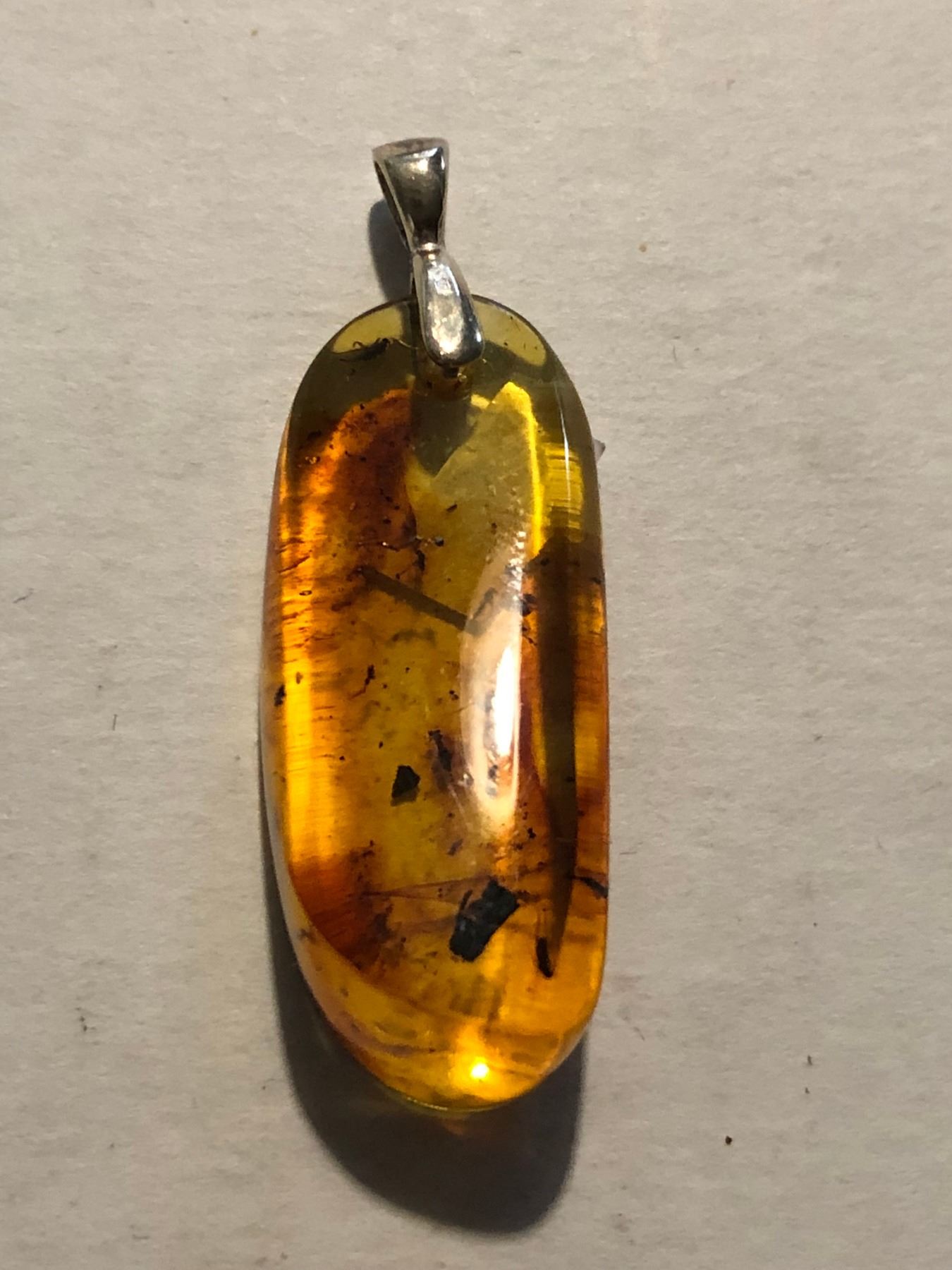 Beautiful Amber Pendant Filled with Insects and Plants Total 4.6 Grams Sterling Silver Clasp