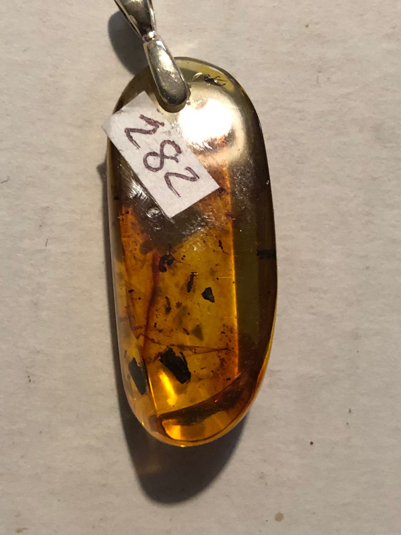 Beautiful Amber Pendant Filled with Insects and Plants Total 4.6 Grams Sterling Silver Clasp