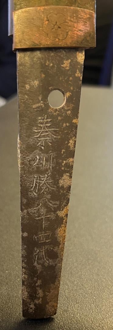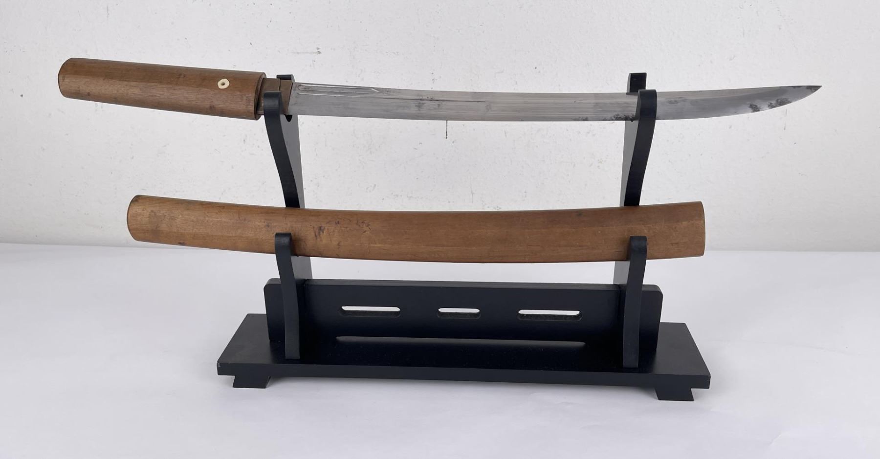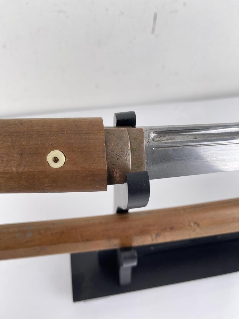 Signed as shown. This sword has a reserve equaling the low estimate. 16 1/2" long with travel handle mount.