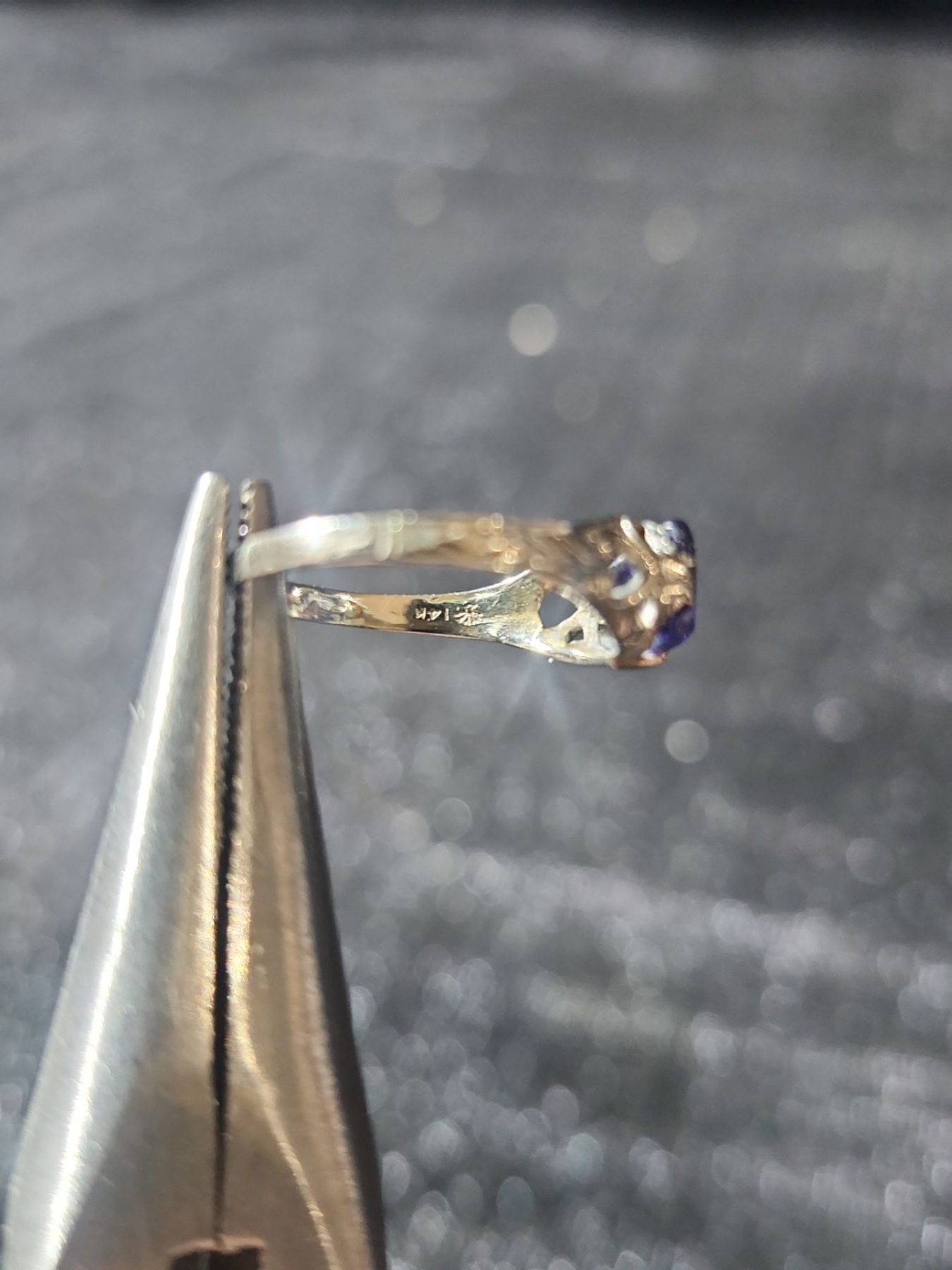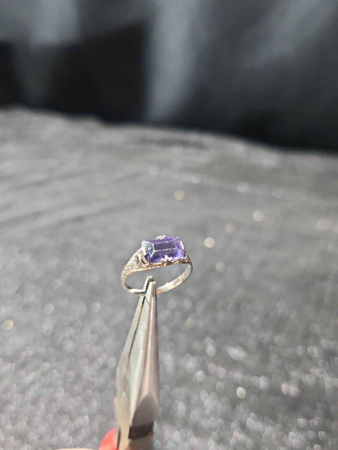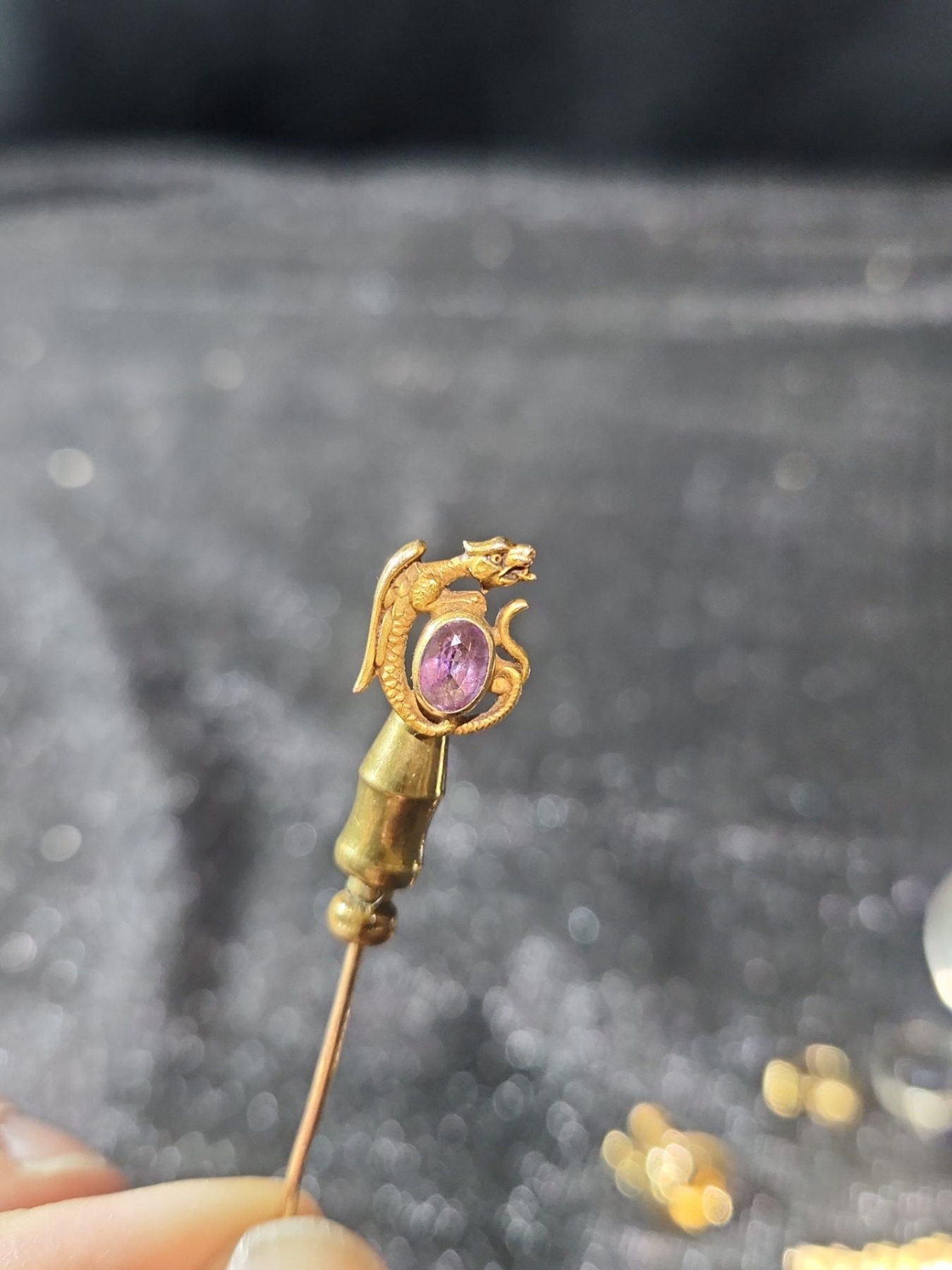 Assortment of timeless brooches , lapel/ hat pins , earrings and a purple stone set ring. Not sure of the ring size, though it does appear rather small
