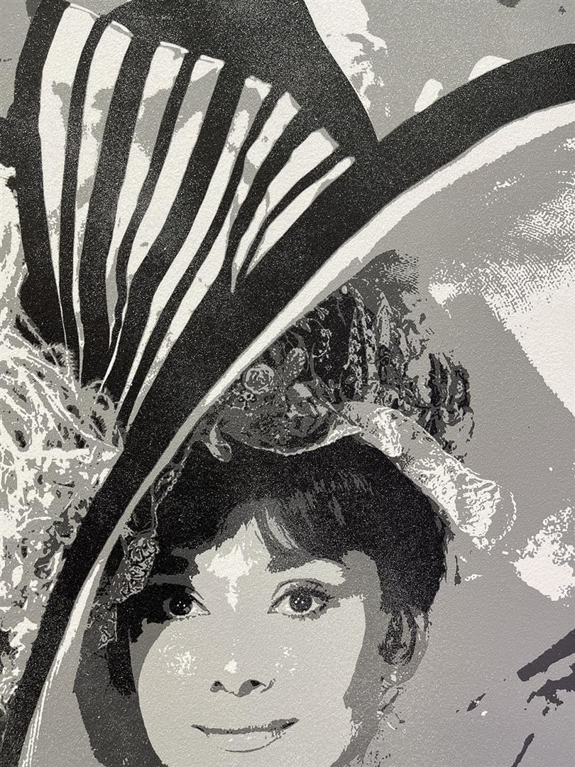 Eye-catching original mixed media with diamond dust on canvas. Hand signed by artist. This artwork comes gallery wrapped. 34x43