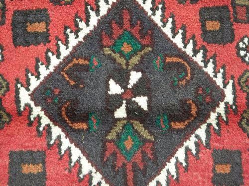 Beautiful Authentic Hand Made Persian Hamadan. Size 4.1 X 3.3 feet, made of fine quality baby lamb's wool pile on cotton foundation, all natural vegetable dye, incorporating a dual headed multi layer central medallion on a red back ground and crowned corners. Great contrast in the variety of colors. Hand woven in Hamadan, Iran. About Hamadan rugs: Hamadan is the capital of an eponymous province, and it's one of the oldest cities in Persia. It's also one of Persia's most productive and diverse weaving centers. Over the years, many refugees, minorities and ethnic groups have inhabited the area. Like other cities in the western part of Persia, Hamadan produced fine, coarse carpets that are made with the symmetric Ghiordes or Turkish knot. Due to the sheer number of villages in the province of Hamadan and the area's ethnic diversity, many unique designs are featured in these regional rugs. Traditionally, Hamadan has been a center for commercial carpet production. The fragmented ethnic groups that have historically lived in Hamadan include Kurds, Azeri Turks and Islamic people. Antique Hamadan rugs traditionally favor angular designs although large-scale arabesques and curvilinear motifs are also found. They are closely related to rugs produced in the neighboring areas of Bibakabad, Shiraz, Lilian and Dozens of cities that produce local styles.