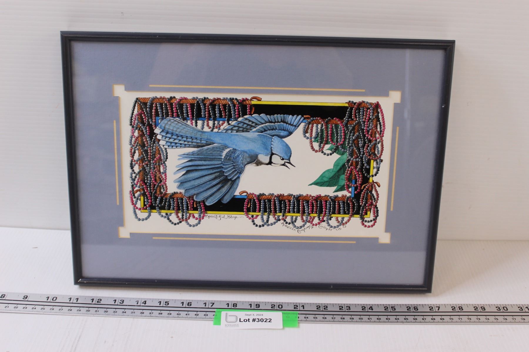 Beautiful Blue Jay Painting in Frame - 16" x 11"