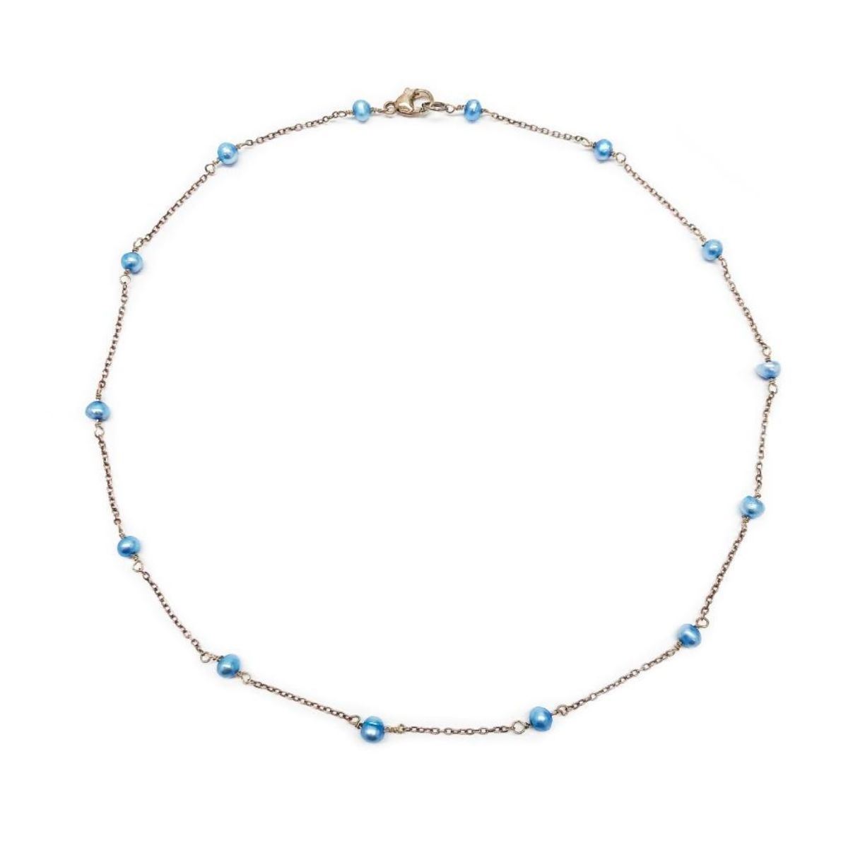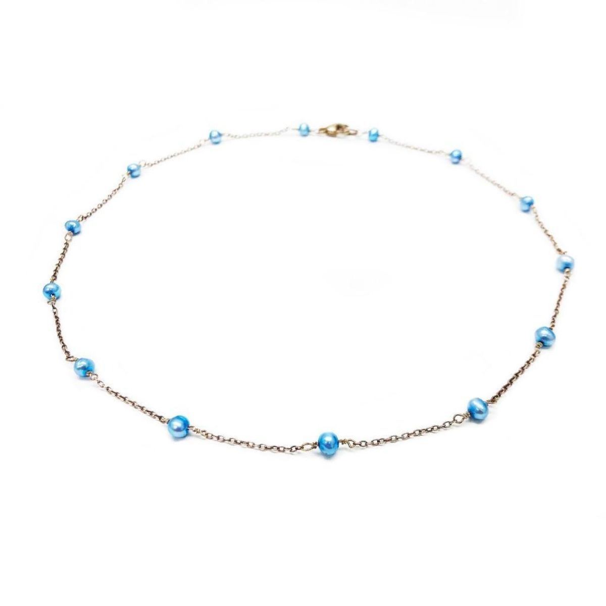For Auction Is A Beautiful Blue Authentic Pearl Necklace With Silver Chain