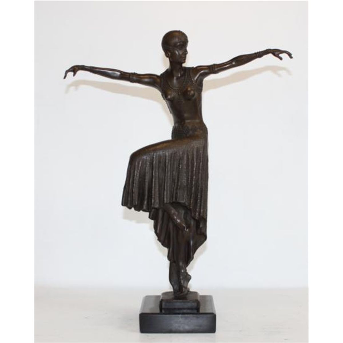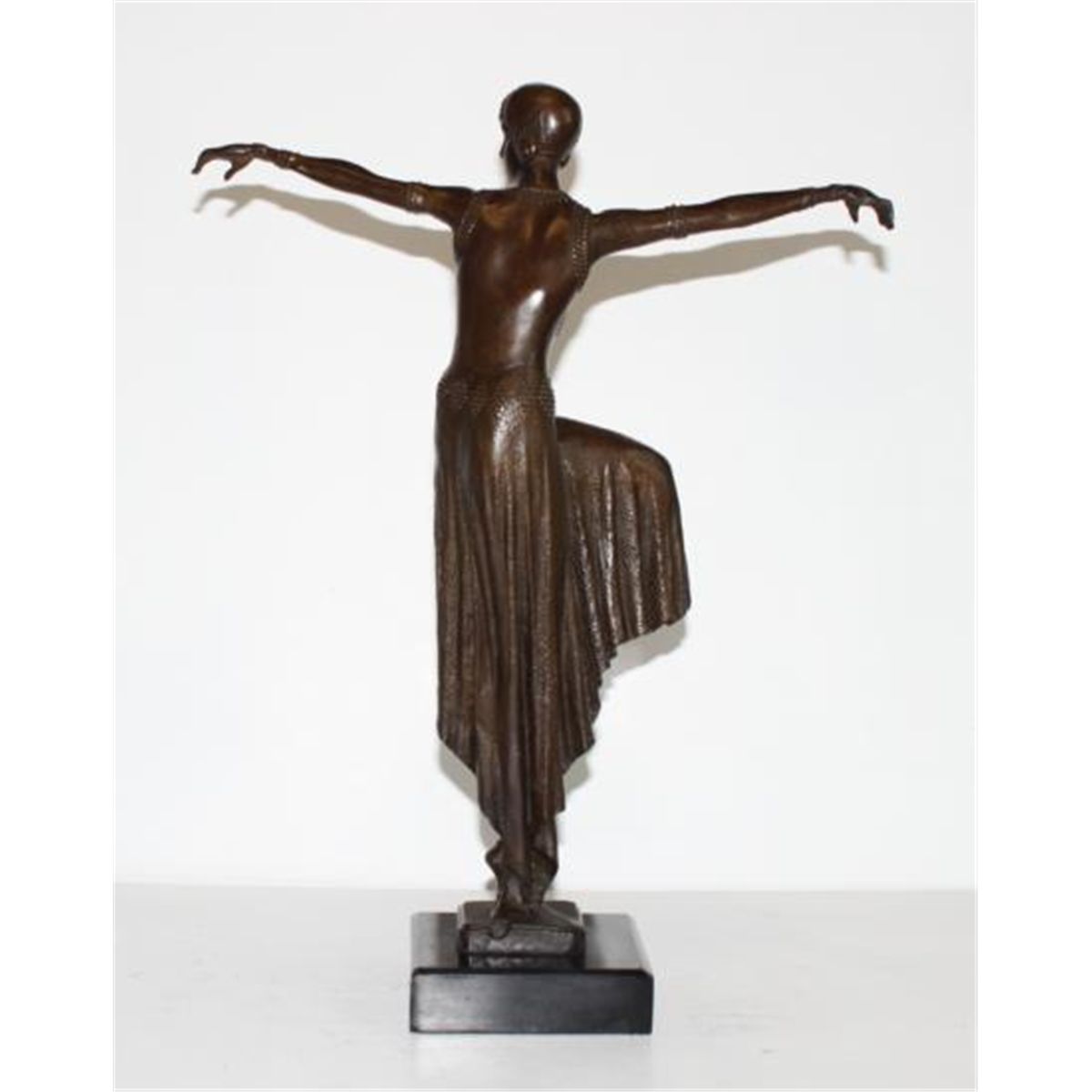 Flapper Girl, Art Deco Dancer Bronze Sculpture, After Noee 9 "H x 11"W x 11"D 16 lbs. This bronze sculpture was produced using the "Lost Wax" casting method. The"Lost Wax" Cast method is the most precise metal casting technique in existence, ensuring exquisite detail of the original host model which is usually sculpted in clay or wax. This "Lost Wax" casting method is an extremely labor intensive and expensive process, but the end results produce a Heirloom Quality Masterpiece!