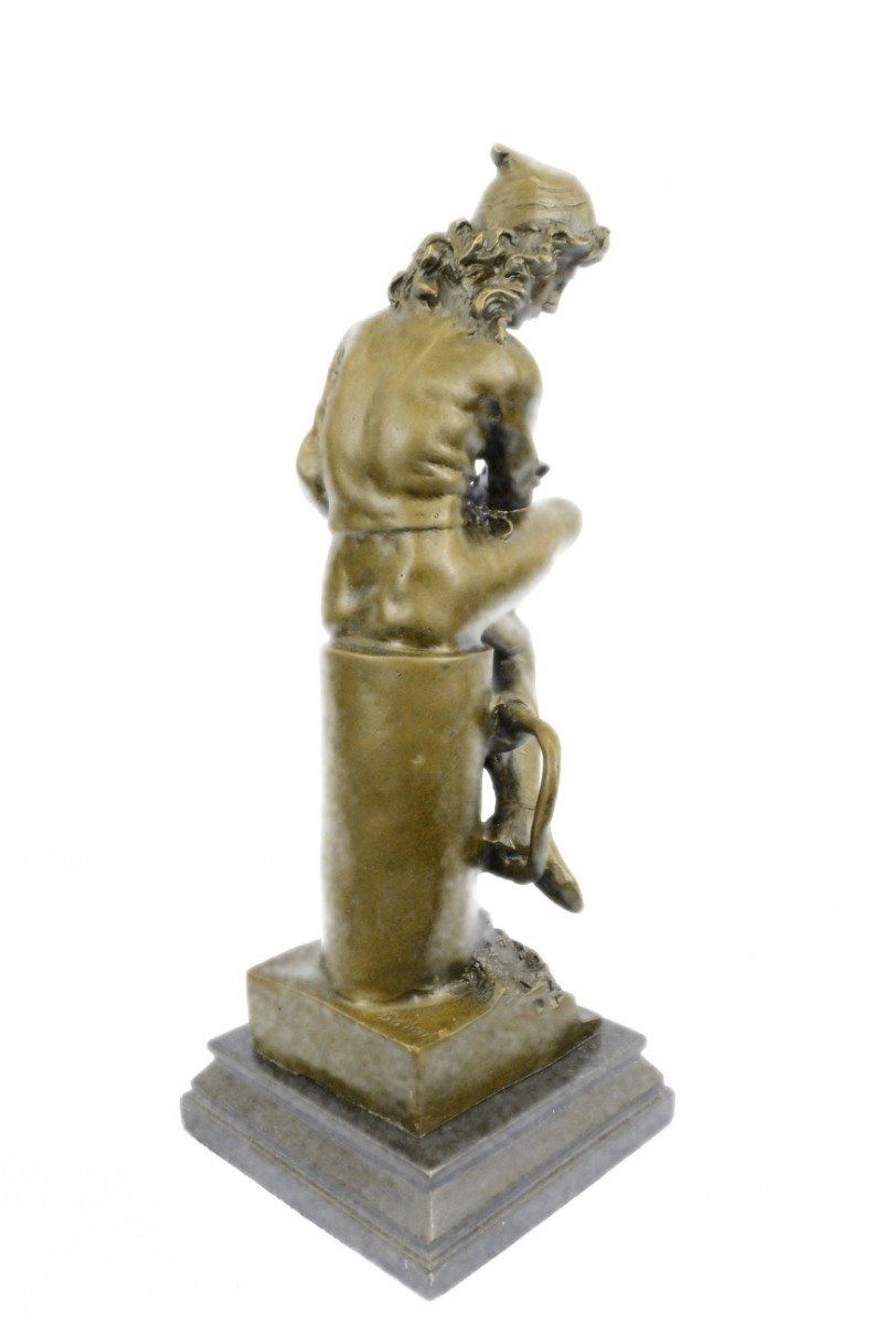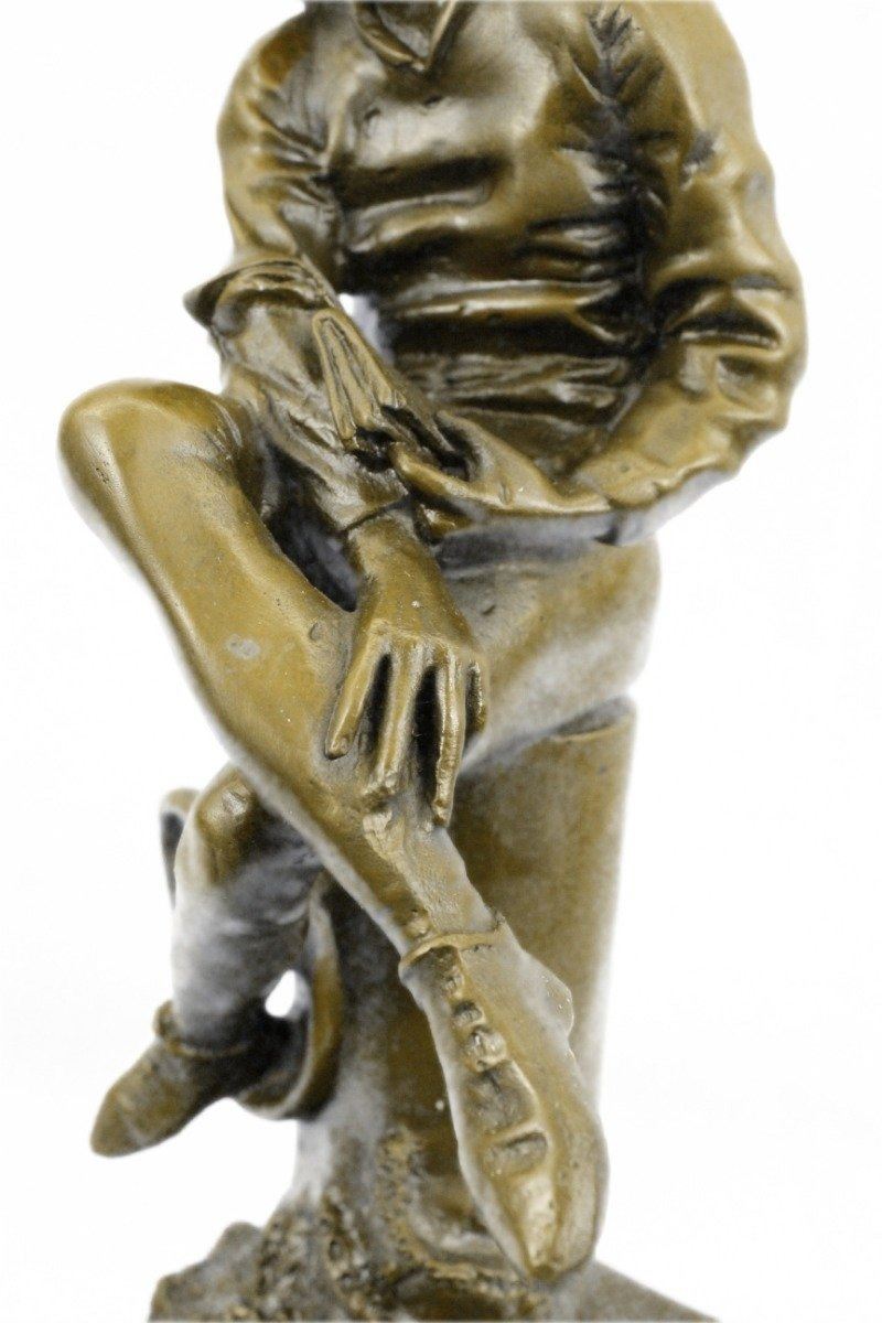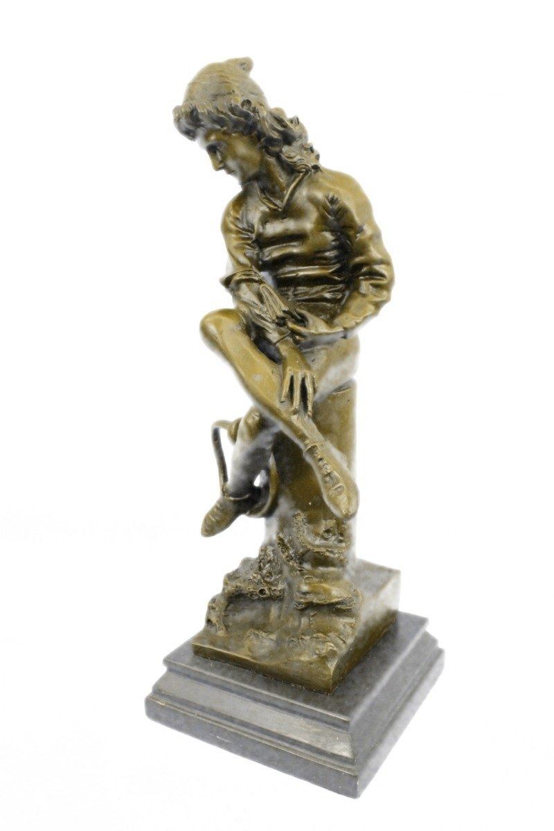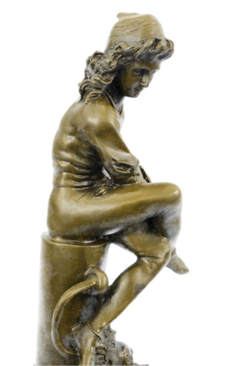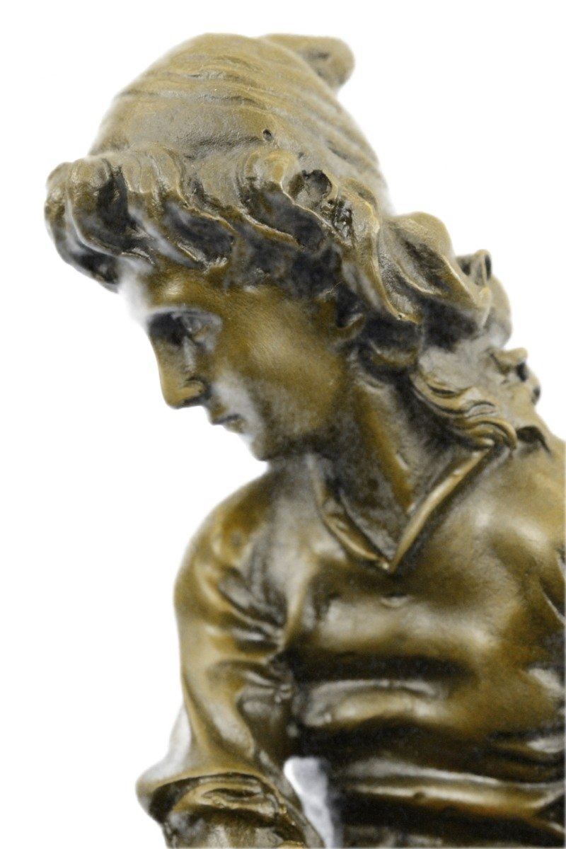 The young girl ca be envisioned sitting with legs crossed on the mooring bollard upon a dock of a seaport. She sits arranging a string tied to her left arm sleeve while some thought takes her away from reality. The handmade bronze sculpture was cast using the early method of lostwax casting and stained with a brown patina finish for preservation. It is mounted upon a black marble base. Bronze Dimensions with Marble Base: Height 14 X Width 5 inches. Weight:12 LBS. Inventory: 68Y2133686