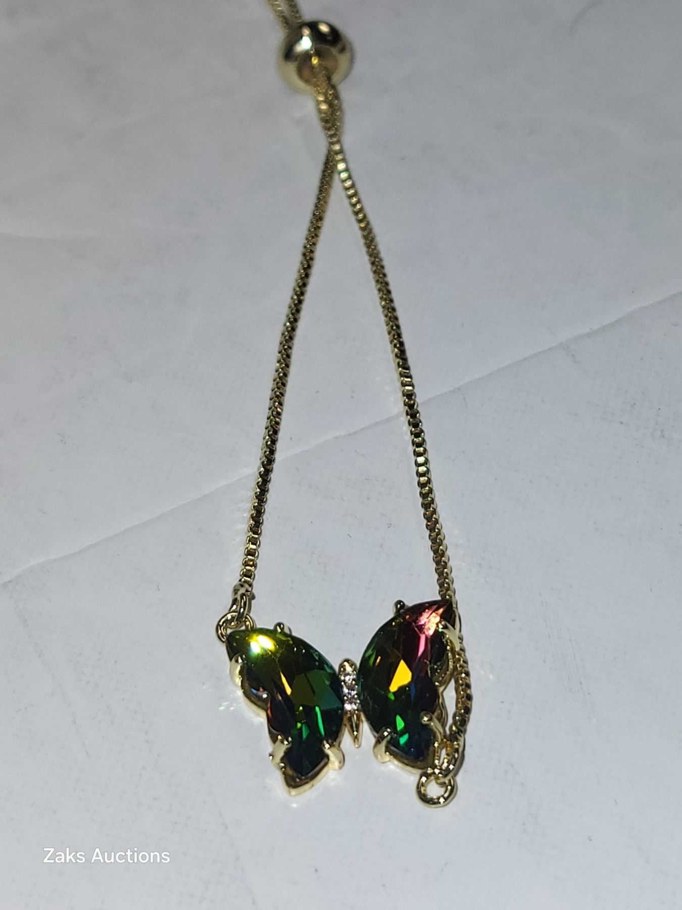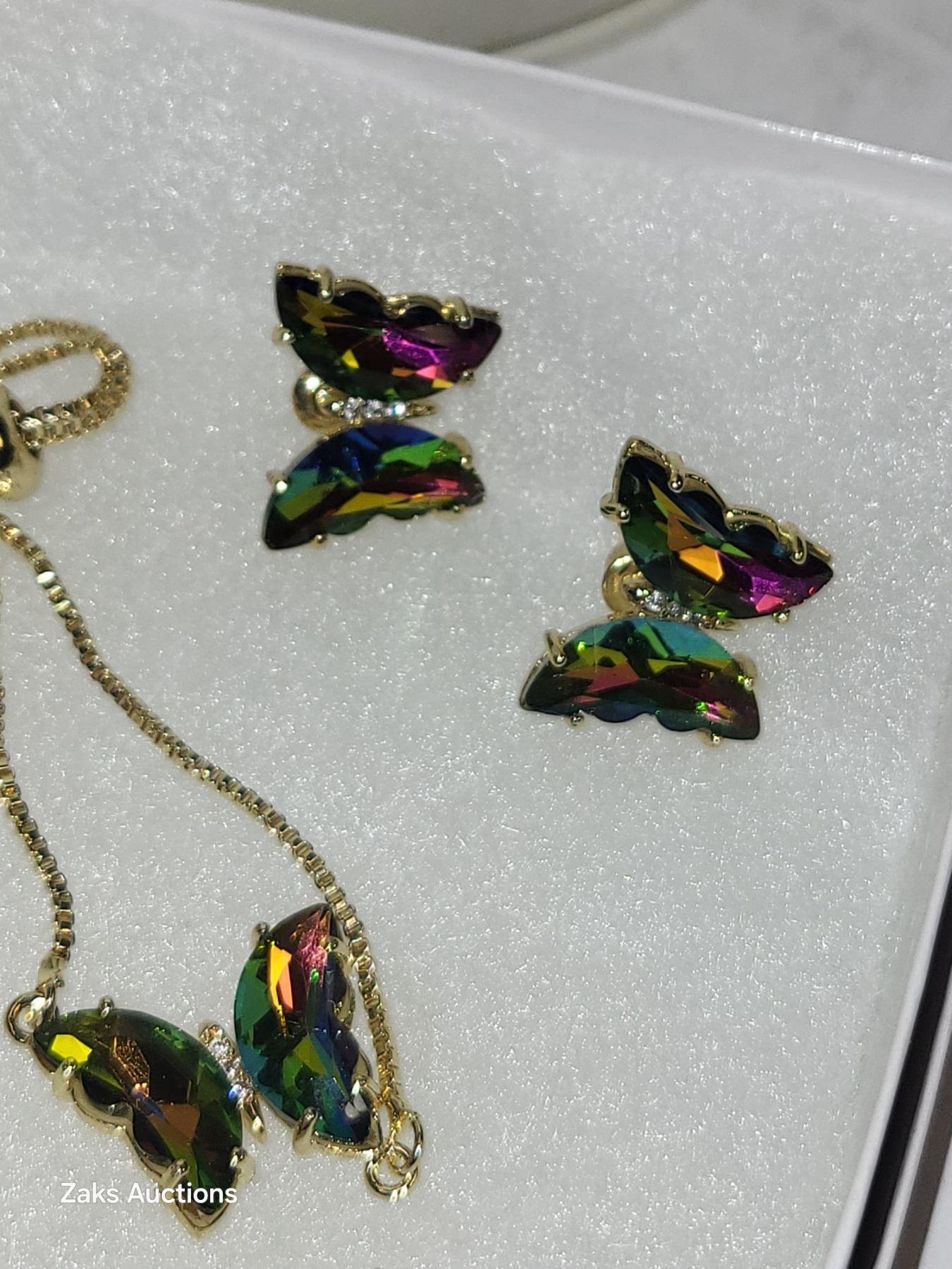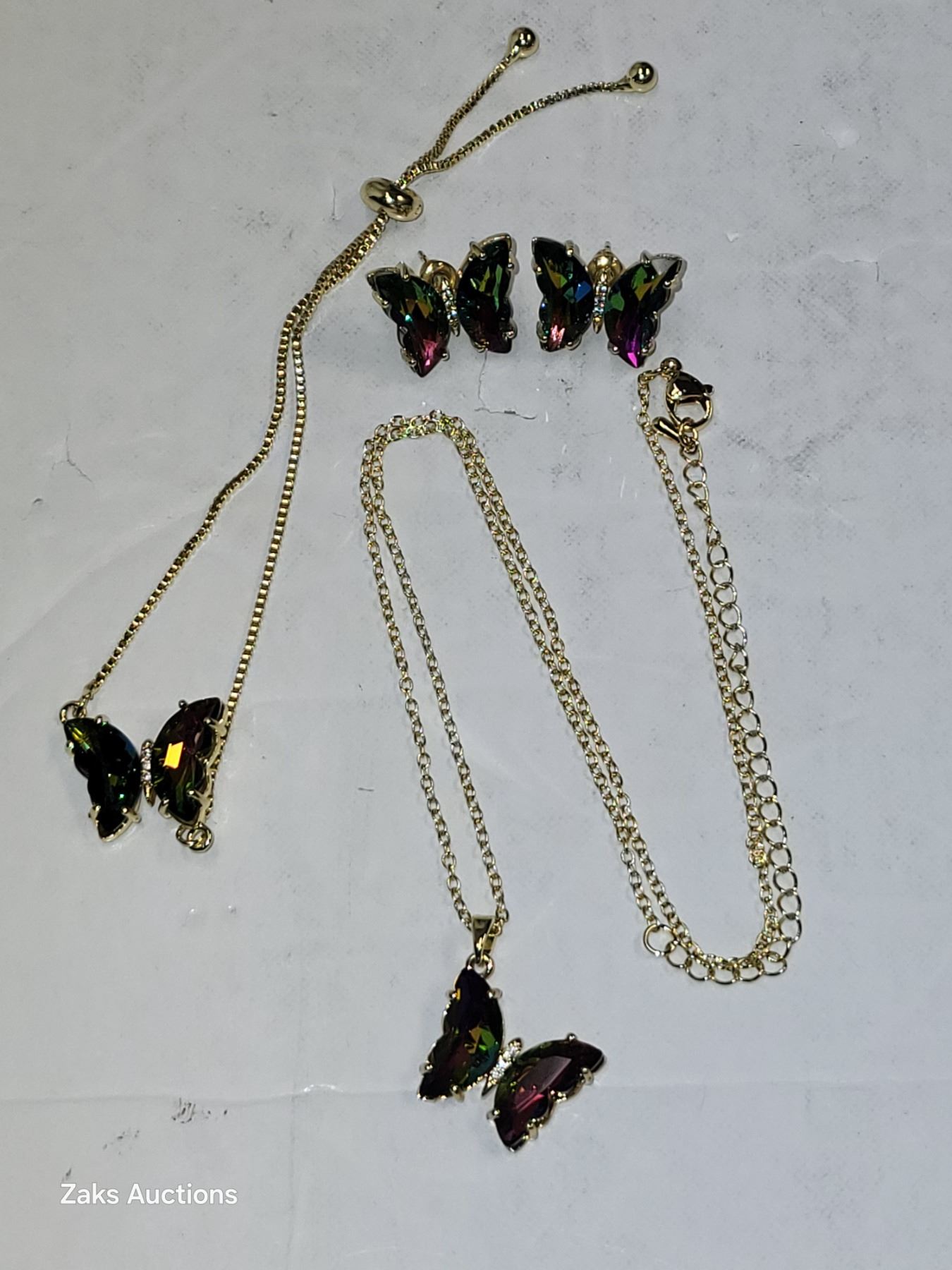 Beautiful Butterfly Crystal Gradient Necklace, Bracelet & Earring Set