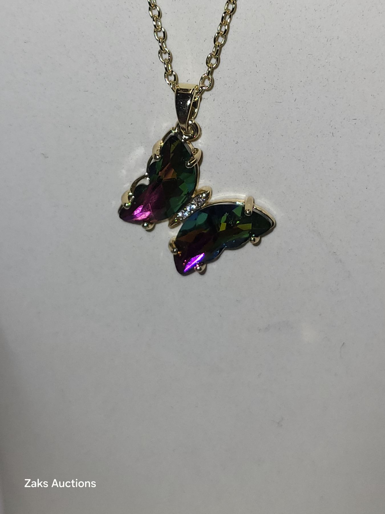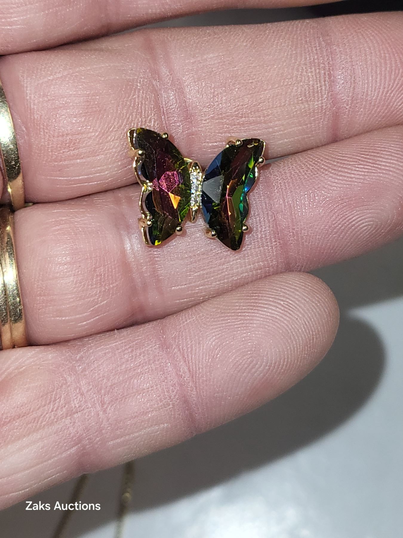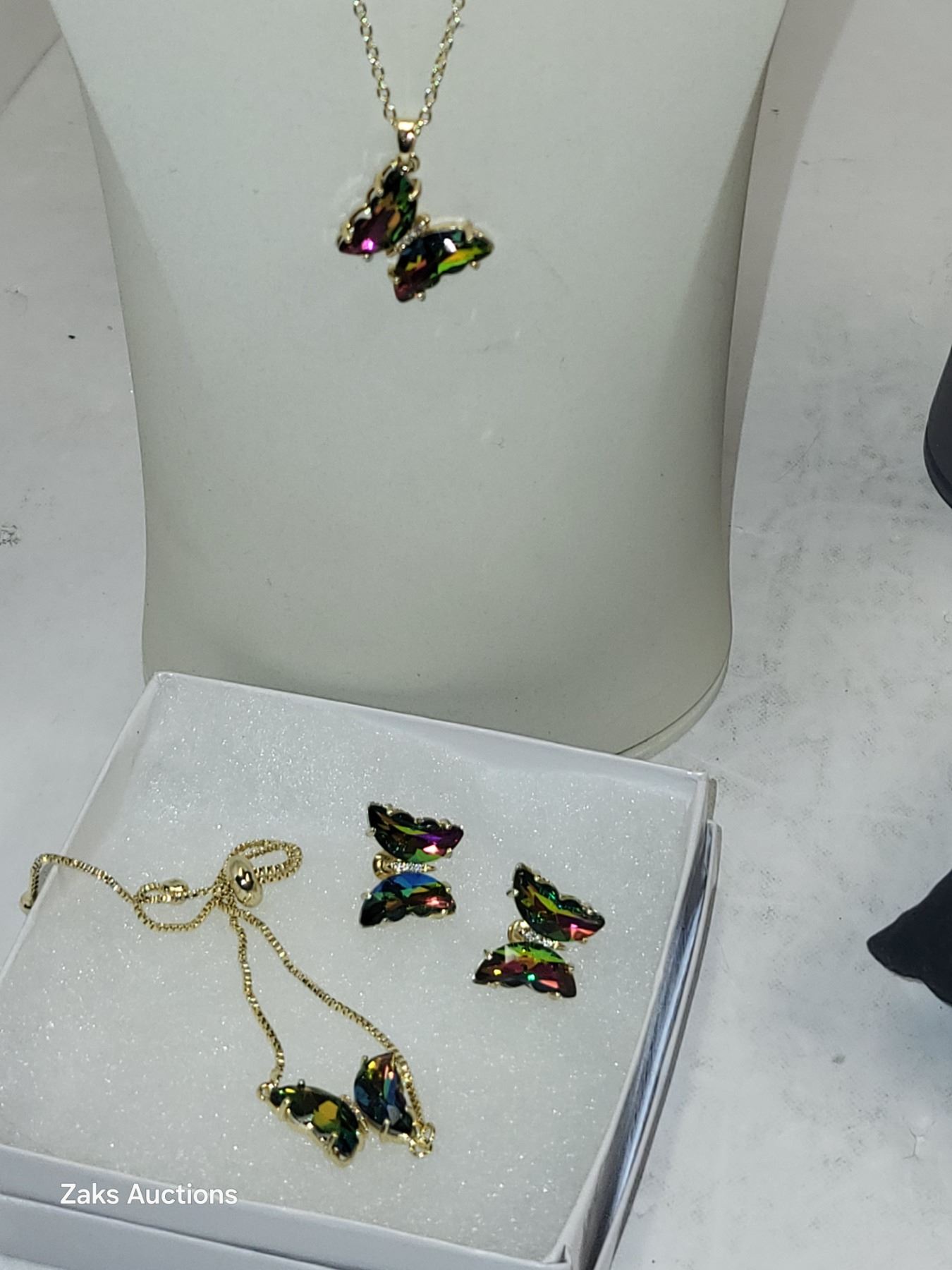 Beautiful Butterfly Crystal Gradient Necklace, Bracelet & Earring Set