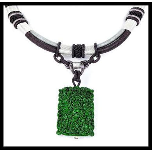 This jade necklace has a modern touch because it isnt of traditional design. The work of an artistic craftsman, the jade has a distinguished design and color. One can adjust the length of the cord that hangs the beautifully engraved jade.