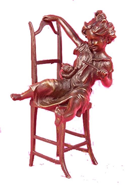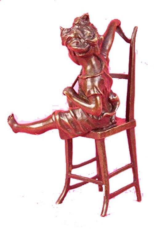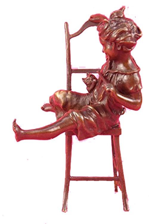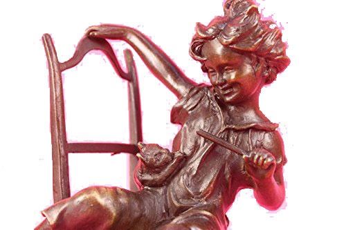 This item selling in Upscale Art Galleries and Museum galleries for up to $1000.00 - $1500.00 when it can be found. This is a sophisticated Piece, perfect for any art lovers home, office, or place of business. Don't miss your opportunity to own this wonderful and rare piece, Buy it Now! Bid with confidence.Think Bronze, takes pride in our superb collection of museum quality Bronze Statues, handpicked from the finest artistry using old world standards around the globe. The attentions to the intricate details of these luxurious works of art are amazing and the brilliance of the figures unsurpassed. From art Nuevo to art deco, wildlife nature to equestrian, classical to contemporary, religious to renascence or nude, you will find a remarkable assortment of diverse Art forms and sizes, coupled with undeniable values makes Think Bronze a fantasy playground for art collector and lover in you.The Title of this piece is called JOLIE CHAT which means Beautiful Cat. It is made by the artist Franz Iffland, the piece has the artist's signature and Paris inscribed on the underside of the chair. This is a vintage copy of the original which was made about 1890. This fine sculpture exudes joy and shows motion from every angle. It depicts the innocent joys of life simply as we know it. As the little girl sits in her chair, she playfully starts a game of peek-a-boo with her precious kitty. The chair itself is plain with no intricate details, this give more attention to the main subject, the girl and her cat. Iffland truly masters motion with the creases in the little girls dress and her hair flying back with wild fun. She wears a contagious smile and gives the vibe of simple childhood happiness. This piece is a delightful sculpture that will add a touch of innocence and fun to your office or home. Franz Iffland (1862-1935) exhibited his work at the Academy in 1886, 1888, 1890 and 1892. Iffland is listed in Thieme-Becker and Benezit. His auction prices can exceed $3,600. He is particularly known for his figures of children. The Berliner Bildhauerschule (Berlin School of Sculptors), included such Greats as Gottfried Schadow, Emil und Robert Cauer, Max Esser, Gustav Eberlein, Peter Breuer, Reinhold Felderhoff, Else Frst, Gerhard Janensch, Wolfgang Schaper, Ferdinand Lepcke, Paul Leibkchler, and Ernst Waegener. They worked in close co-operation with the oldest bell foundry in Sinn - Hessen (Rincker, active since 1590), as well as, the oldest art foundry of Germany, Allim Hammer, in Lauchhammer - Brandenburg (active since 1726).Reproduction Condition: This sculpture is in a very good condition. Bronze Dimensions :Height 9 1/2 x Width 6Weight :5LBSInventory:2924B28992 This item selling in Upscale Art Galleries and Museum galleries for up to $1000.00 - $1500.00 when it can be found. This is a sophisticated Piece, perfect for any art lovers home, office, or place of business. Don't miss your opportunity to own this wonderful and rare piece, Buy it Now! Bid with confidence.Think Bronze, takes pride in our super