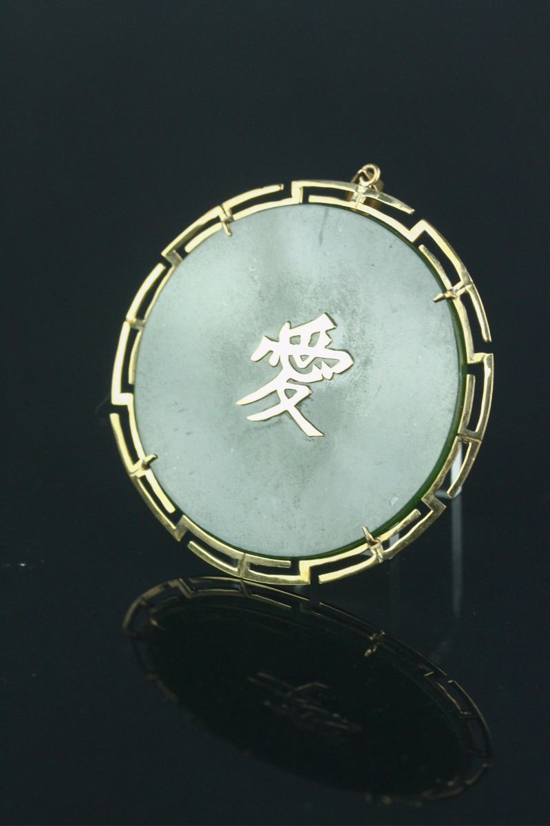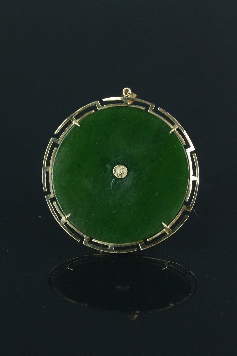 Beautiful Chinese jade disc 14k gold pendant; D: 5.8 cm, 20 grams