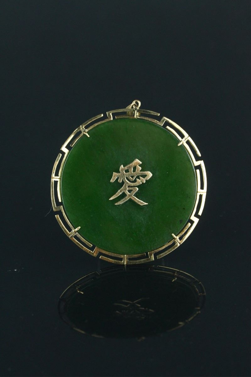Beautiful Chinese jade disc 14k gold pendant; D: 5.8 cm, 20 grams