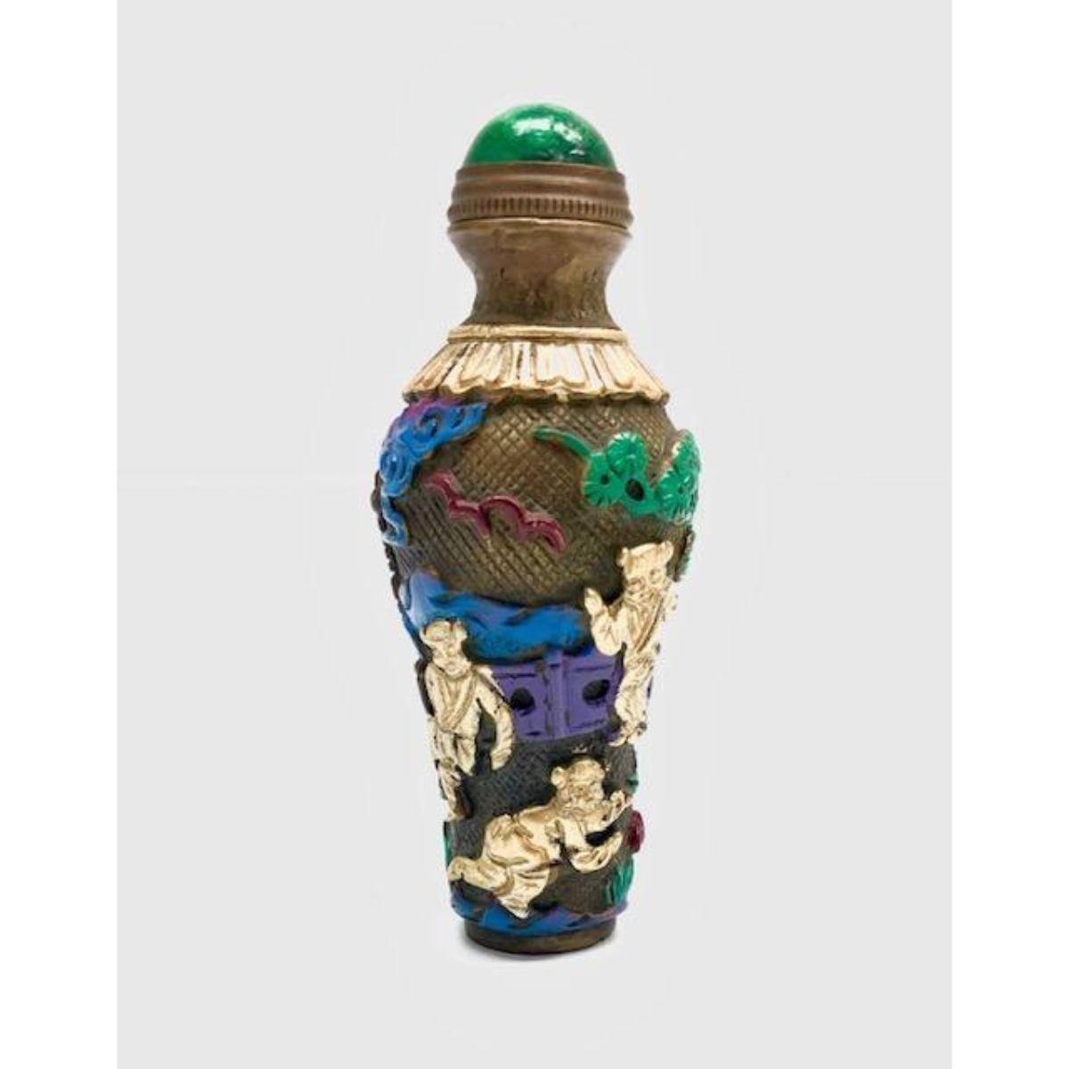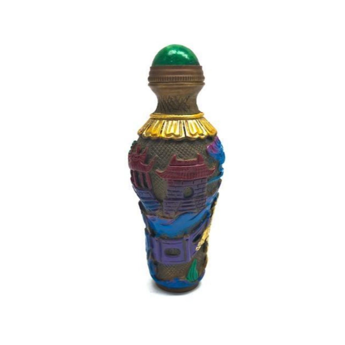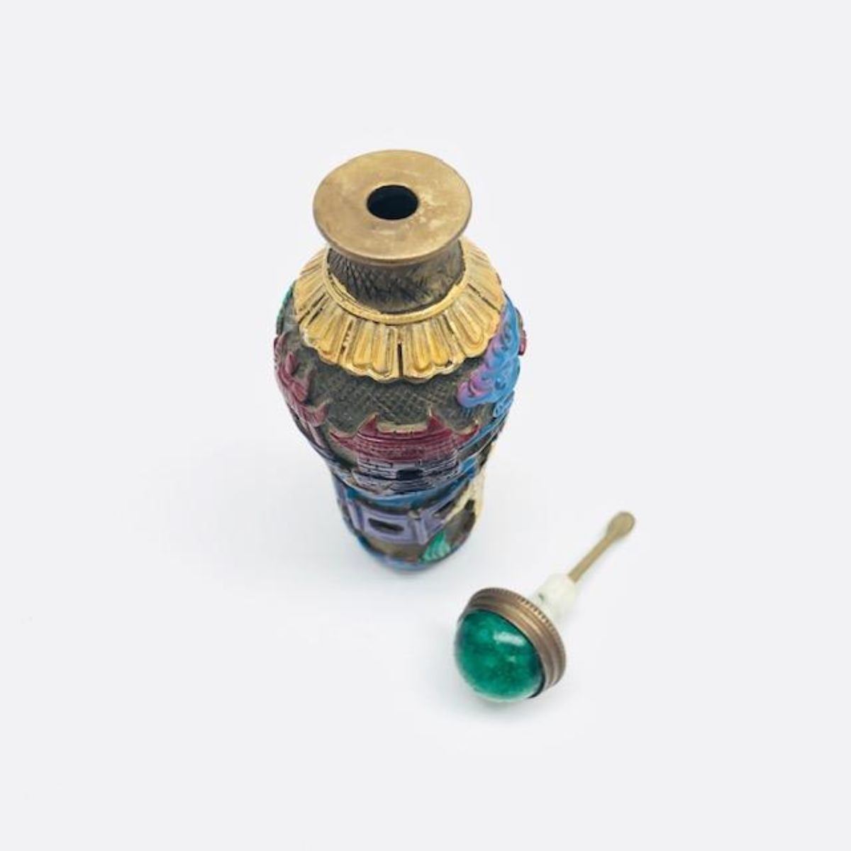 Beautiful Chinese Landscape Brass Hand-Painted Snuff Bottle With Spoon. View Photos To See The Lovely Detail On The Thick And Heavy Bodied Brass Snuff Bottle. Made To Last And Travel With You Where ever You Go, Or Great To Add To A Collection.