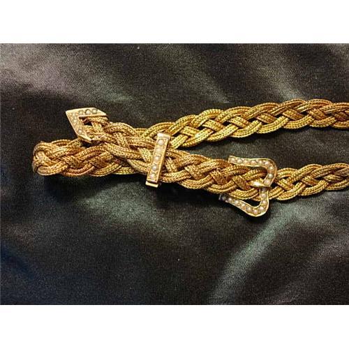 <tr><td>Title:Beautiful Circa 1895 Yellow Gold Buckle Mesh</td></tr>