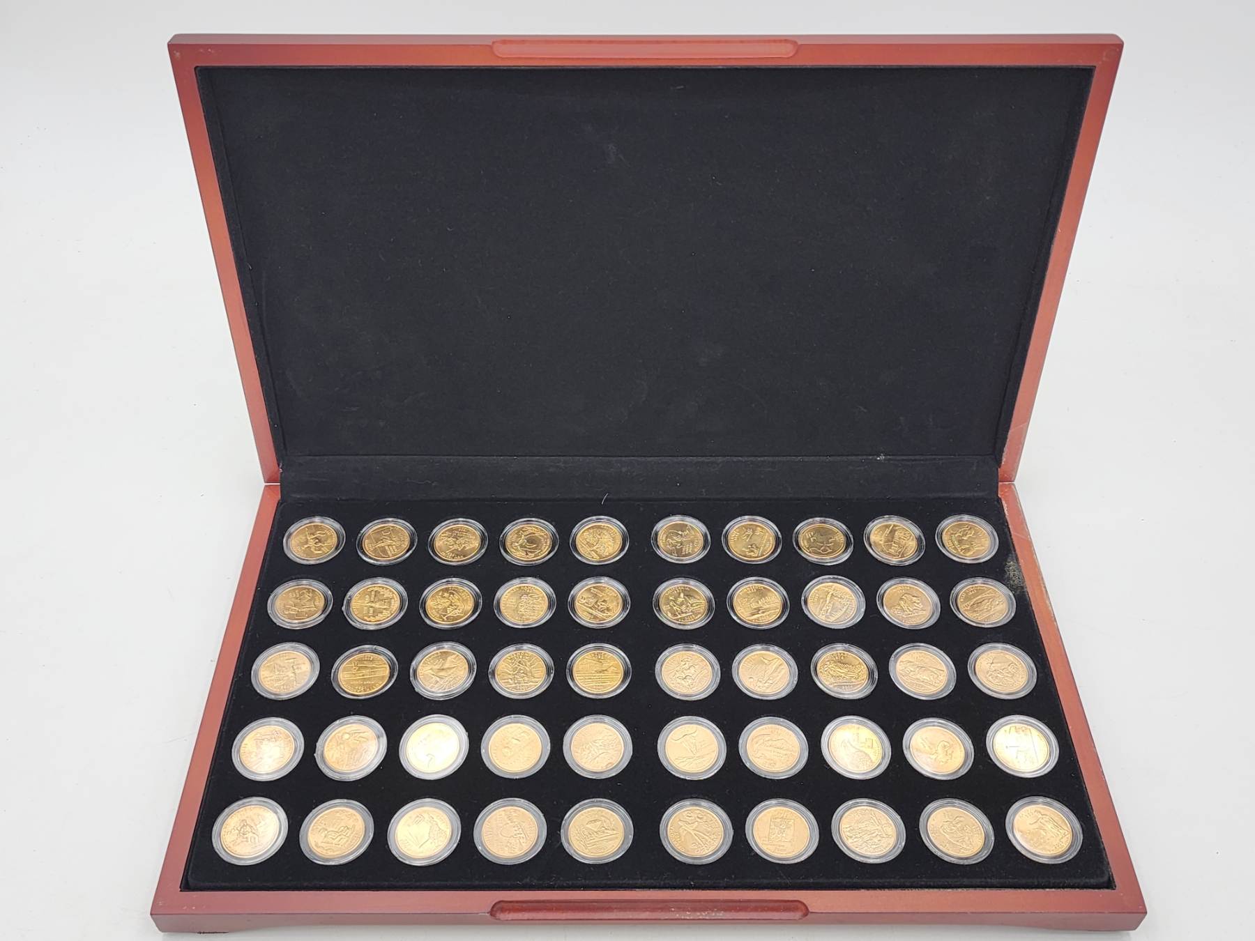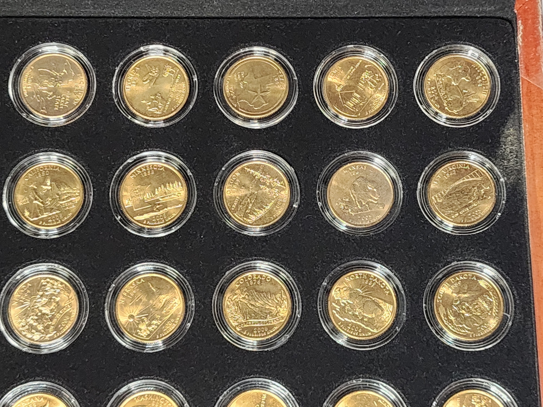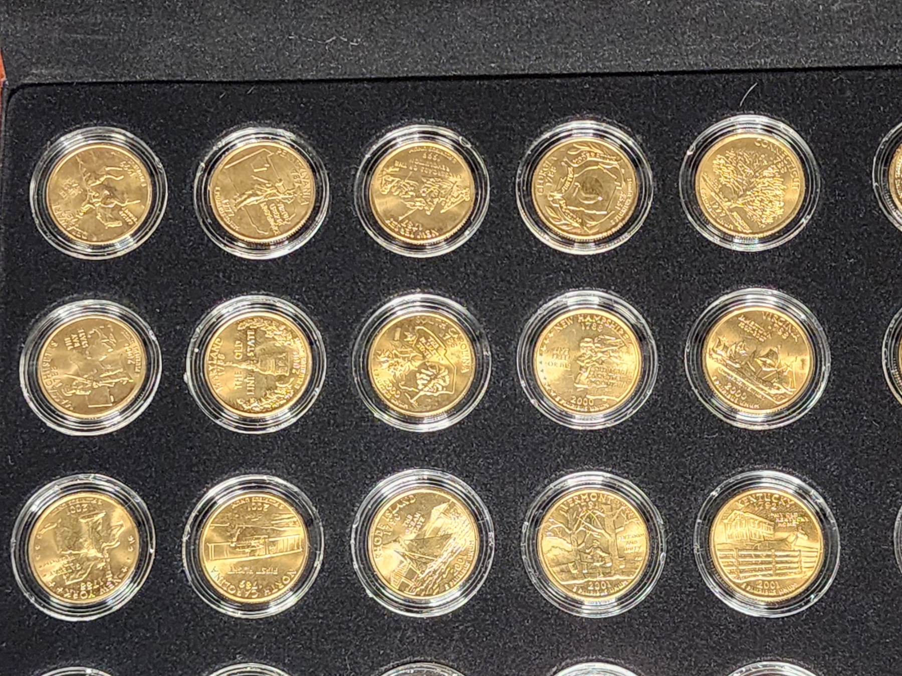Beautiful Collection of 50 Gold-Plated U.S. State Quarters from 1999-2008 in Wooden Display Case