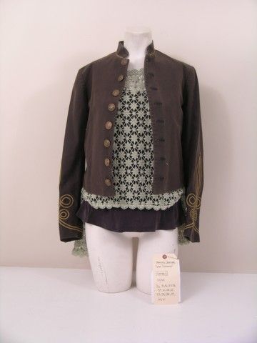 Lena Duchannes (Alice Englert) screen worn, hero, charcoal faded black military style with buttons jacket, beige long sleeve open knit sweater, and dark purple silk 'Pure & Good' camisole. (size S) Includes wardrobe tag!