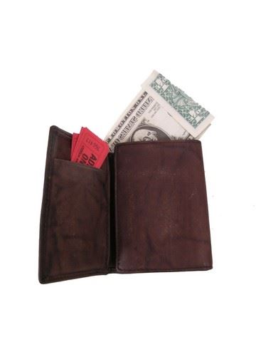 Link (Thomas Mann) screen used, hero, brown leather wallet with two tickets and one fake dollar.