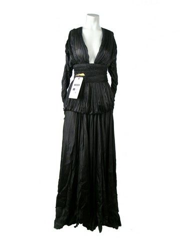 Talk about a split personality, in "Beautiful Creatures" (2013), Emma Thompson blasts through the screen in her delicious duel roles as ultra reactionary church lady Mrs. Lincoln, and the conniving sensual witch Sarafine. Her costumes truly represent these two total opposite personas. This bust-plunging black crêpe dress is one of her hero screen used Sarafine outfits. It includes a detailed original production wardrobe tag with scene numbers and other notes.