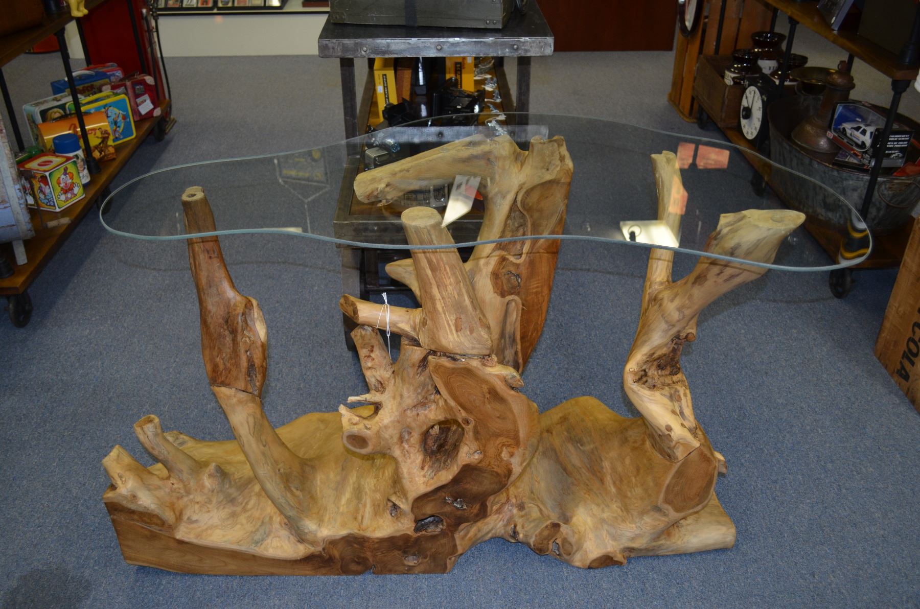 Irregular Shaped Glass Top. Approx. 4'L x 16"W x 32"H