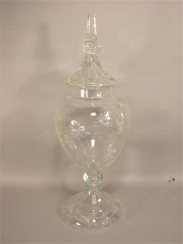 Beautiful cut glass store display jar, 31.5"T x 11"D, no chips or cracks.
