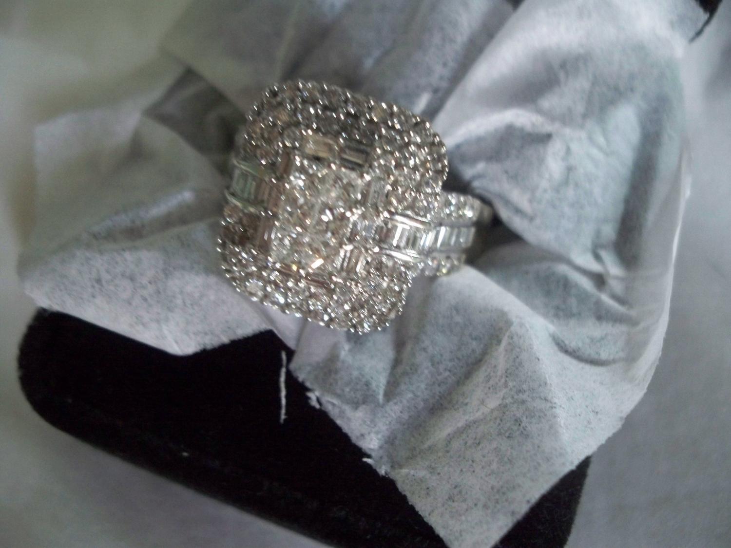 Beautiful Diamond Ring. 5.5 CT VS Diamonds with lovely F color set into a 14 K white gold band.