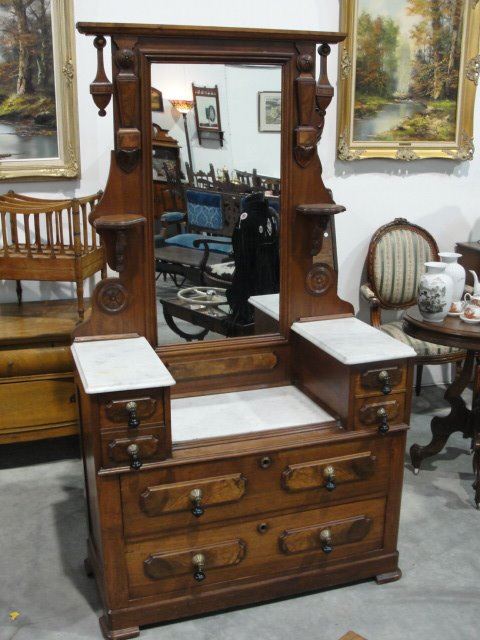 Beautiful Federal Style Marble Top Walnut Dresser w/Mirror C.1880's