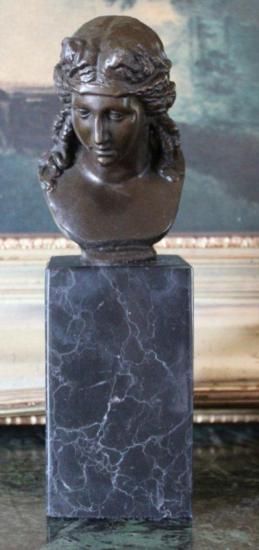 Beautiful Female Bust, Bronze Sculpture, After Fix Masseau, 9 1/2inH x 3 inW x 2 3/4in D 8lbs. This bronze sculpture was produced using the Lost Wax casting method. The Lost Wax Cast method is the most precise metal casting technique in existence, ensuring exquisite detail of the original host model which is usually sculpted in clay or wax. This Lost Wax casting method is an extremely labor intensive and expensive process, but the end results produce a Heirloom Quality Masterpiece!