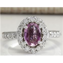 1.95 CTW Natural Coral And Diamond Ring In 14k White Gold