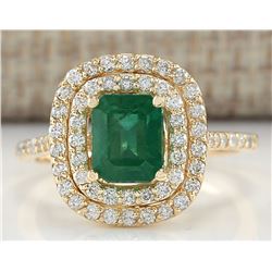 3.63 CTW Natural Emerald And Diamond Ring In 14k Yellow Gold