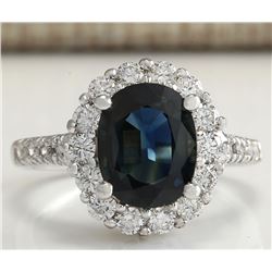 5.28 CTW Natural Blue Sapphire And Diamond Ring In 14k White Gold