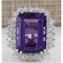7.50CTW Natural Amethyst And Diamond Ring In 14K White Gold