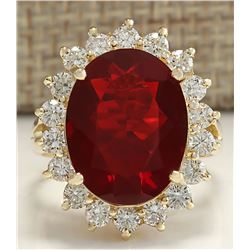 9.33 CTW Natural Coral And Diamond Ring In 14k Yellow Gold