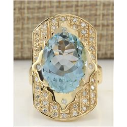 9.50CTW Natural Aquamarine And Diamond Ring In 14K Solid Yellow Gold