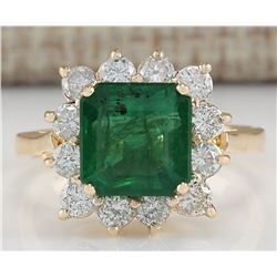 4.40CTW Natural Emerald And Diamond Ring In 14K Yellow Gold