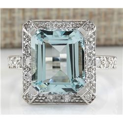 4.48CTW Natural Aquamarine And Diamond Ring In 14K Solid White Gold