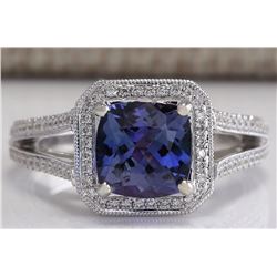 5.90 CTW Natural Tanzanite And Diamond Ring In 14k White Gold