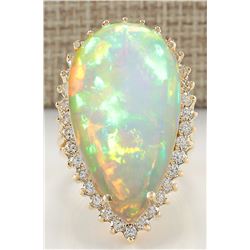 6.53 CTW Natural Opal And Diamond Ring In 14k Yellow Gold