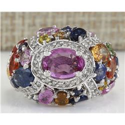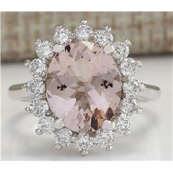 4.72CTW Natural Peach Morganite And Diamond Ring In 14K Solid White Gold