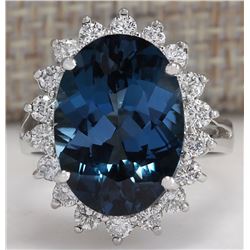 10.32Ct Natural London Blue Topaz And Diamond Ring In14K Solid White Gold