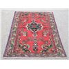 Beautiful Fine Quality Hand Woven Persian Hamadan. Size 5.1 X 3.4 feet, made of fine quality baby lamb's wool pile on cotton foundation, all natural vegetable dye. This fine looking rug incorporates a floral pattern on a rich red background; a large multi colored medallion; crowned corners and celebrated beautifully by an intricately done geometric border. Great contrast in the variety of colors. Hand woven in Hamadan, Iran. About Hamadan rugs: Hamadan is the capital of an eponymous province, and it's one of the oldest cities in Persia. It's also one of Persia's most productive and diverse weaving centers. Over the years, many refugees, minorities and ethnic groups have inhabited the area. Like other cities in the western part of Persia, Hamadan produced fine, coarse carpets that are made with the symmetric Ghiordes or Turkish knot. Due to the sheer number of villages in the province of Hamadan and the area's ethnic diversity, many unique designs are featured in these regional rugs. Traditionally, Hamadan has been a center for commercial carpet production. The fragmented ethnic groups that have historically lived in Hamadan include Kurds, Azeri Turks and Islamic people. Antique Hamadan rugs traditionally favor angular designs although large-scale arabesques and curvilinear motifs are also found. They are closely related to rugs produced in the neighboring areas of Bibakabad, Shiraz, Lilian and Dozens of cities that produce local styles.