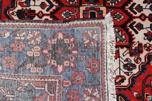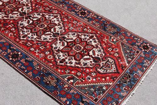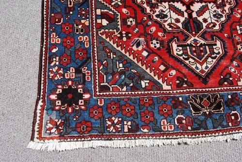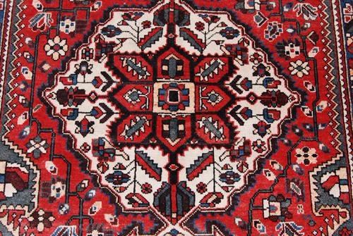 Beautiful finely detailed Persian Bakhtiari. Size 5.5 x 10.2 feet, this beautiful piece is made of fine quality baby lamb's wool pile on cotton foundation, all natural vegetable dye, incorporating a finely detailed floral pattern on red background; three nice medallion; crowned corners and an intricate floral border. Hand woven in Bakhtiar, Iran. Bakhtiari is an ancient southwestern Iranian tribe. Bakhtiaris were Nomaidc pastoralists and weaving rugs was and still is a unique way of expression and telling stories.