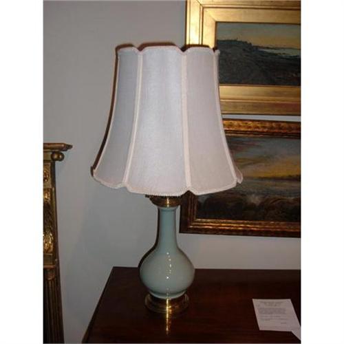 A beautiful celedon porcelain oil lamp that has been electrified.