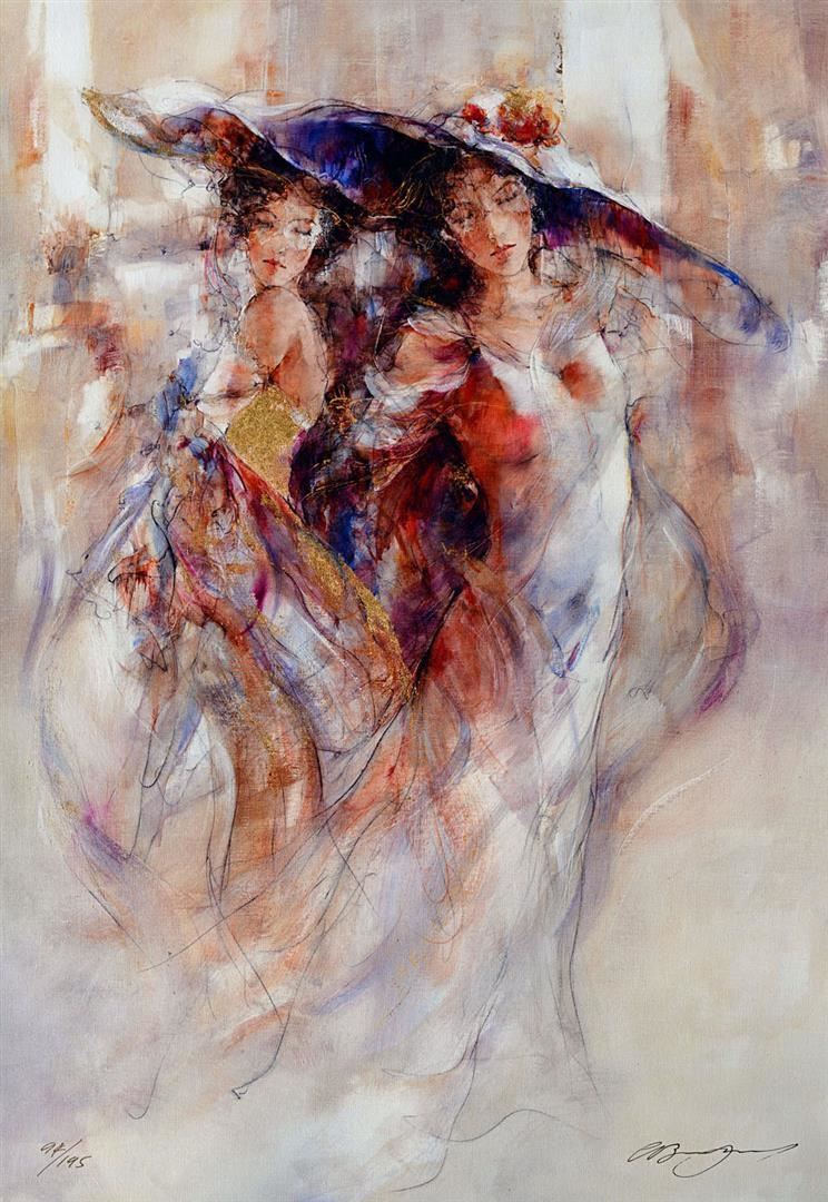 Artist: Gary Benfield - Title: Autumn Ball - Medium: Fine Art Giclee on Canvas - Signature: Hand-signed by the Artist - Limited Edition: 195 - Image Size: Approximately 32.5 inches x 22.25 inches - Unframed on UnStretched Canvas - Details: This work comes with a Certificate of Authenticity - Biography: Benfield's paintings are drawn rapidly with an almost passionate urgency. Many sketches are immediately discarded, only those that feel right, that have integrity are presented to the public. This ensures that his work is dynamic yet maintains a strong organic unity. Few artists can, as well as Benfield, capture the sense of movement, both physical and emotional. After leaving the academic world he set up his own studio near London and concentrated on drawing and painting figures. Within a few years his work was collected throughout Europe and his reputation firmly established.