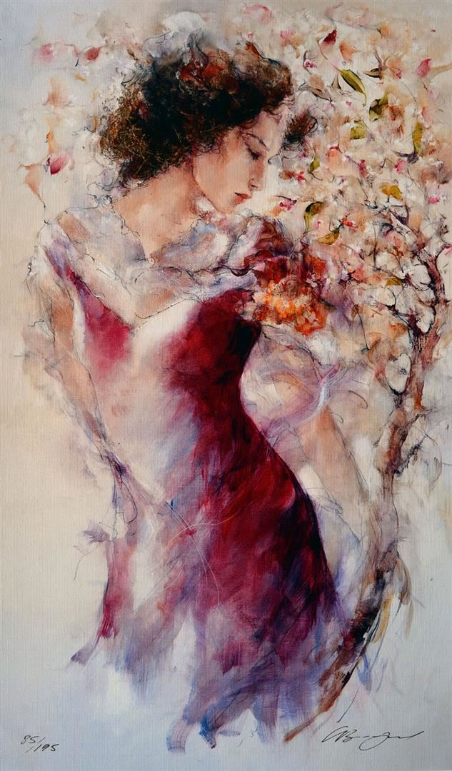 Artist: Gary Benfield - Title: Flora - Medium: Fine Art Giclee on Canvas - Signature: Hand-signed by the Artist - Limited Edition: 195 - Image Size: Approximately 20 inches x 12 inches - Framed: Unframed on UnStretched Canvas - Details: This work comes with a Certificate of Authenticity - Biography: Benfield's paintings are drawn rapidly with an almost passionate urgency. Many sketches are immediately discarded, only those that feel right, that have integrity are presented to the public. This ensures that his work is dynamic yet maintains a strong organic unity. Few artists can, as well as Benfield, capture the sense of movement, both physical and emotional. After leaving the academic world he set up his own studio near London and concentrated on drawing and painting figures. Within a few years his work was collected throughout Europe and his reputation firmly established.