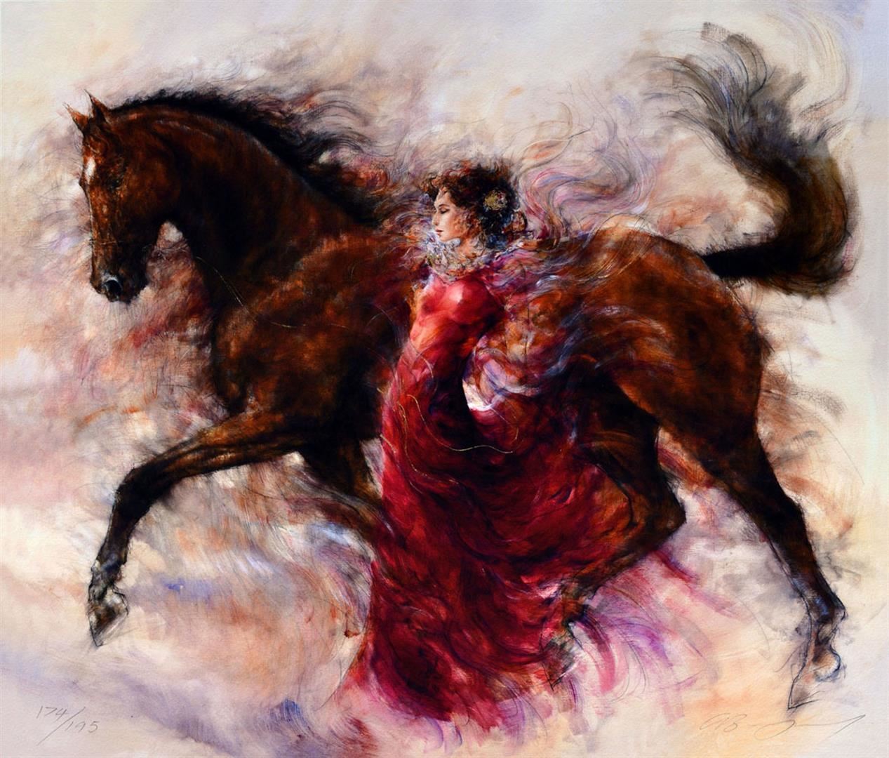 Artist: Gary Benfield - Title: Mercedes Storm - Medium: Fine Art Giclee on Paper - Signature: Hand-signed by the Artist - Limited Edition: 195 - Image Size: Approximately 18.25 inches x 21 inches - Paper Size: Approximately 22 inches x 23 inches - Unframed - Details: This work comes with a Certificate of Authenticity - Biography: Benfield's paintings are drawn rapidly with an almost passionate urgency. Many sketches are immediately discarded, only those that feel right, that have integrity are presented to the public. This ensures that his work is dynamic yet maintains a strong organic unity. Few artists can, as well as Benfield, capture the sense of movement, both physical and emotional. After leaving the academic world he set up his own studio near London and concentrated on drawing and painting figures. Within a few years his work was collected throughout Europe and his reputation firmly established.