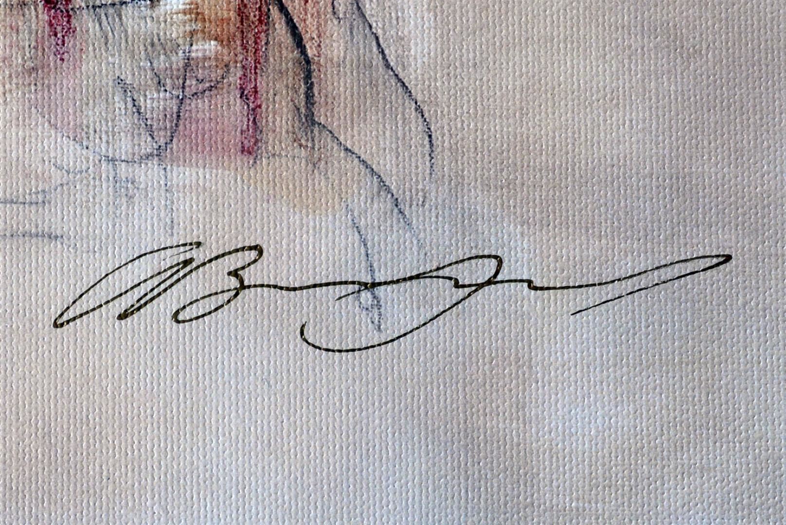 Artist: Gary Benfield - Title: Sweet Music - Medium: Fine Art Giclee on Canvas - Signature: Hand-signed by the Artist - Limited Edition: 195 - Image Size: Approximately 32.25 inches x 22.25 inches - Unframed on UnStretched Canvas - Details: This work comes with a Certificate of Authenticity - Biography: Benfield's paintings are drawn rapidly with an almost passionate urgency. Many sketches are immediately discarded, only those that feel right, that have integrity are presented to the public. This ensures that his work is dynamic yet maintains a strong organic unity. Few artists can, as well as Benfield, capture the sense of movement, both physical and emotional. After leaving the academic world he set up his own studio near London and concentrated on drawing and painting figures. Within a few years his work was collected throughout Europe and his reputation firmly established.