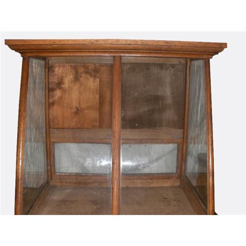 This is a beautiful display case, with full glass front and sides. Their is even a glass divider down the center. The back features four doors: two larger wood ones on top that open to the side, and two bottom glass ones that open downwards. Rustic metal latch and hinges on the back. This will be great for storing and displaying your treasures. Brought to you by Sand Hill East.