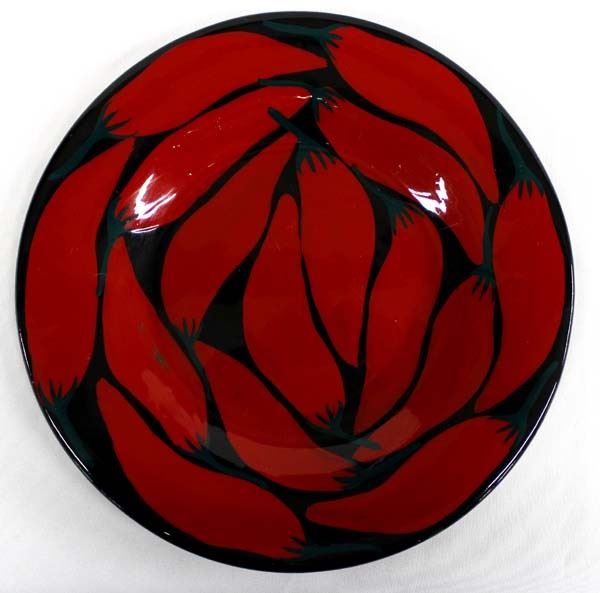 Beautiful Glazed Red Chile Pottery Plate, ready to hang, measures 12''D x 1''H