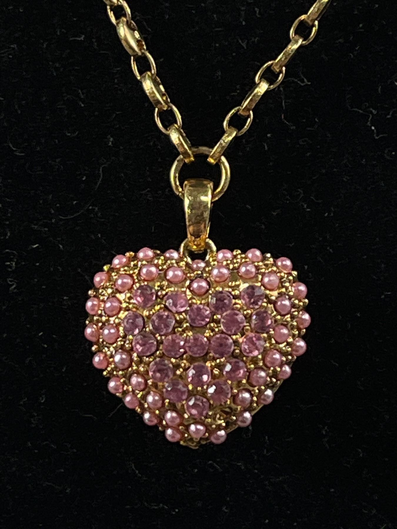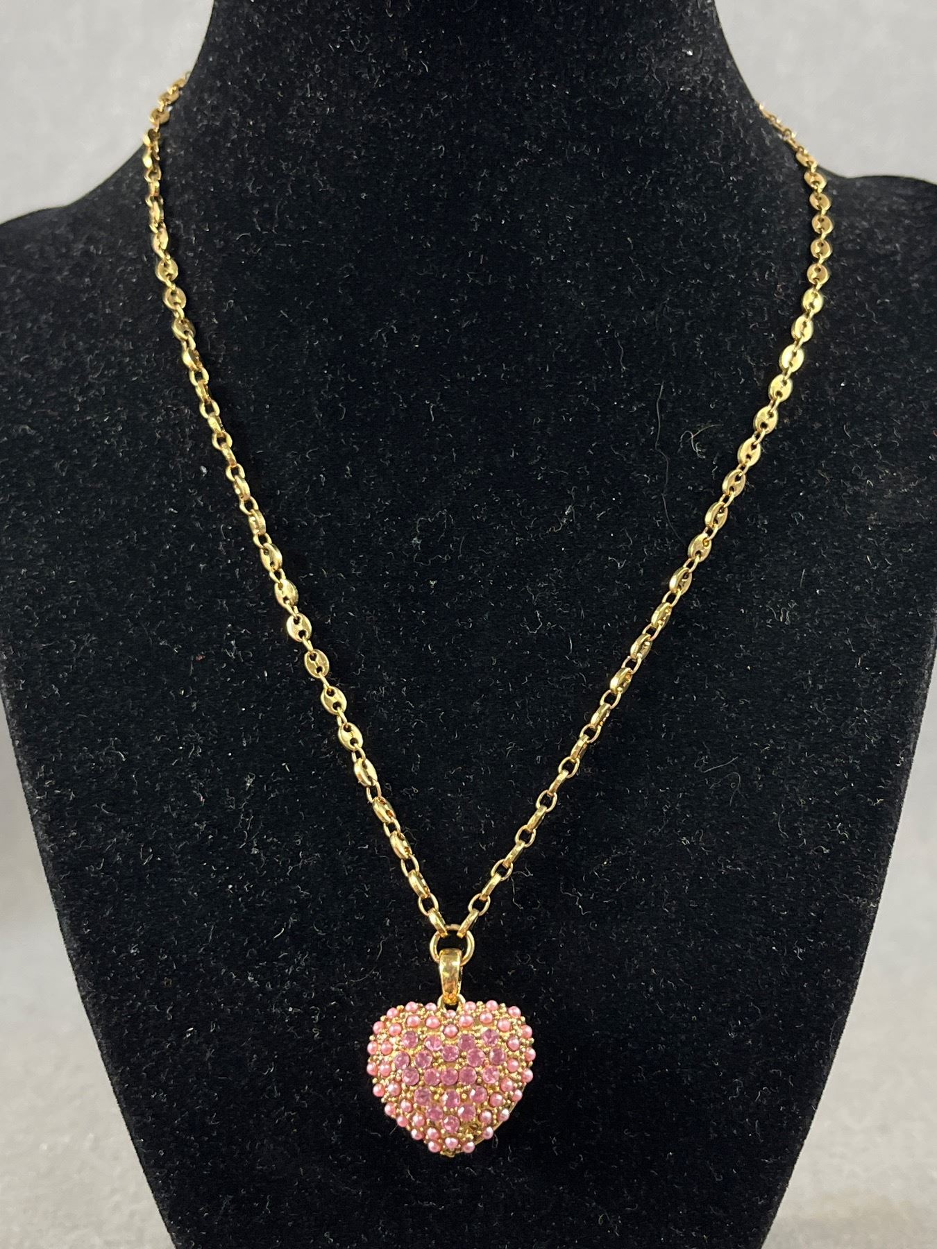 Beautiful Gold Gucci Design Links Chain with Rhinestone Heart Pendant Necklace