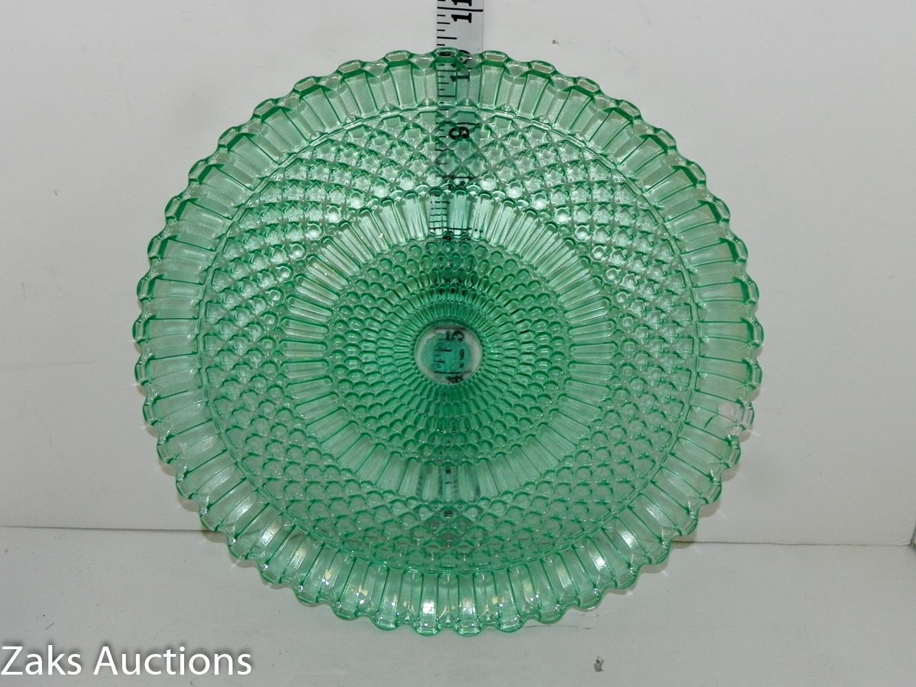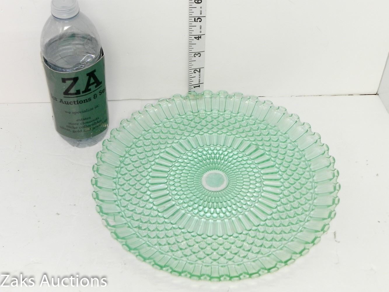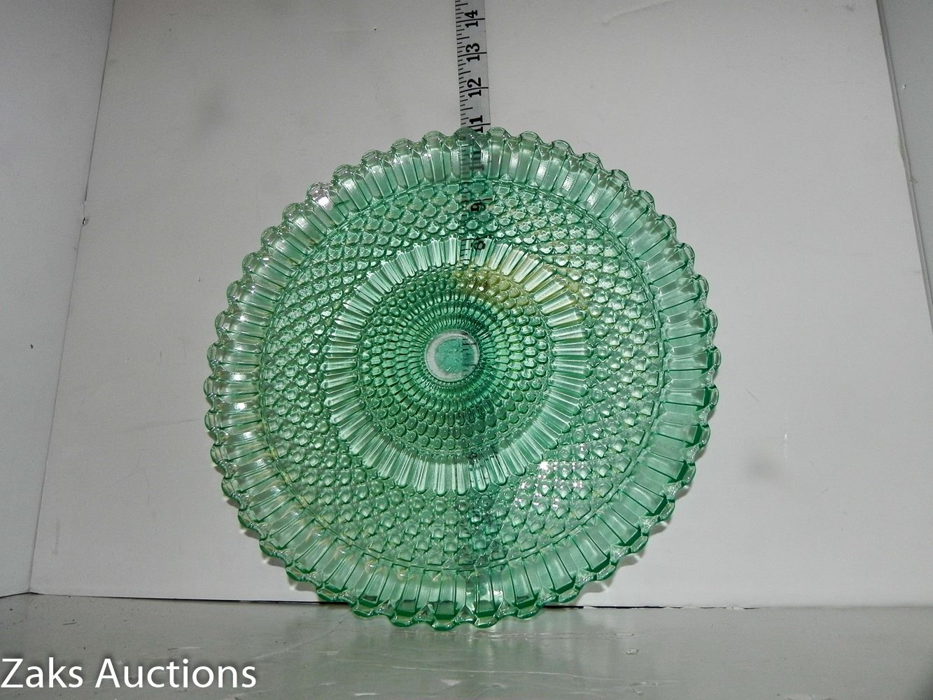 Beautiful Green Depression Glass Non-Footed Serving Plate. Has some minor damage, see all pictures